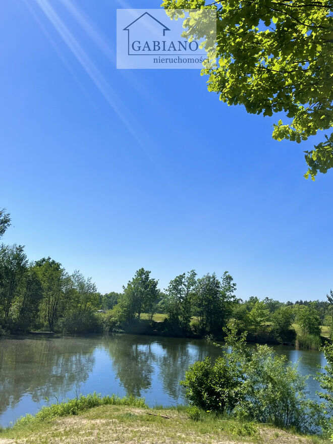 Z okien domu roztacza się malowniczy widok na staw i otaczającą go zieleń.