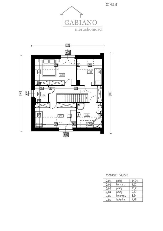 Dom składa się z parteru oraz poddasza.